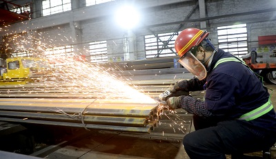 山鋼股份型鋼廠針對近期高溫天氣,全面落實防暑降溫物資儲備、隱患排查整改等各項工作措施,尤其是對于高溫崗位職工采取各種降溫措施,為職工身心健康和安全生產(chǎn)保駕護航。圖為精整車間精整修磨職工穿戴全套勞保護品修磨鋼材。 (張 建)
