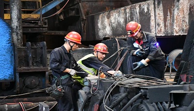 近日,萊鋼銀山型鋼板帶廠寬厚板產(chǎn)線開展檢修作業(yè),作為承接任務(wù)的運維車間,認真落實夏季“四防”各項要求,穩(wěn)步推進,保障了檢修作業(yè)安全開展。圖為檢修職工“全副武裝”開展檢修作業(yè)。 (張 波)